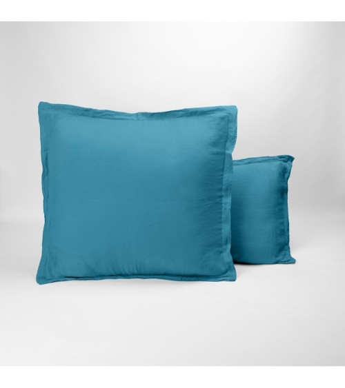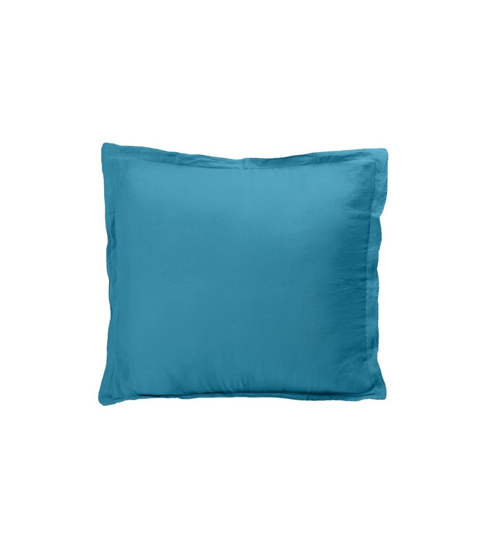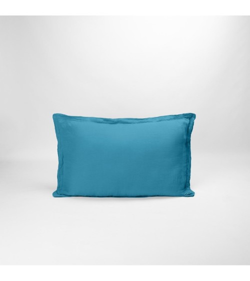 Taie d'oreiller naturelle en lin bleu pétrole 50x70 cm