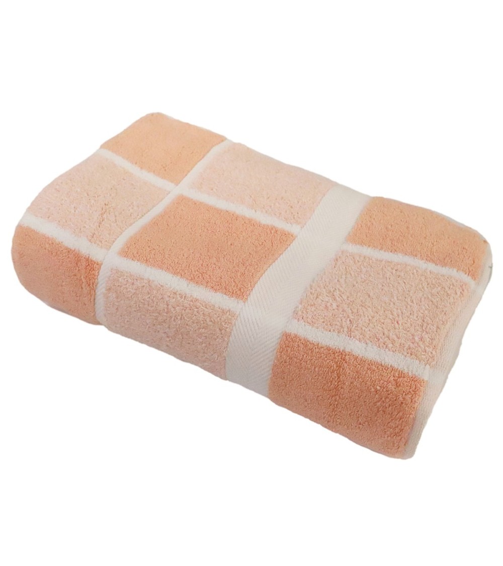 Drap de douche éponge à carreaux en coton saumon 70x140 cm