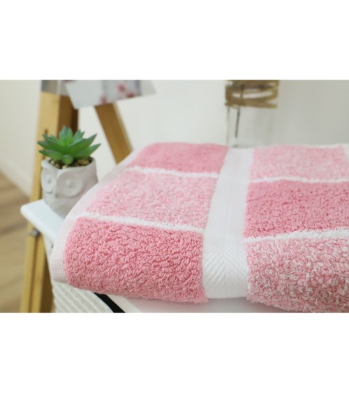 Drap de bain éponge carreaux en coton rose pâle 100x150 cm