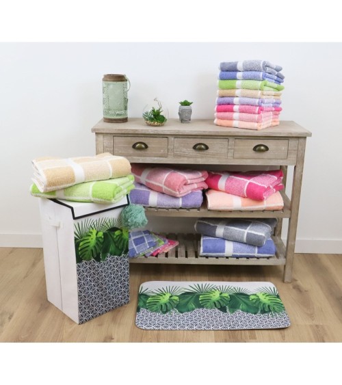 Une serviette de toilette en éponge douce et moelleuse, aux couleurs lumineuses. Les motifs jacquards à carreaux sont tendances dans une salle de bain, et lui donneront une touche moderne. Caracteristiques du drap de bain Carreaux CELESTE : Dimension 100x150En bouclette éponge pur coton, 500gr/m2Liteau blanc coton serréMotifs grands carreaux bicoloresGamme disponible complète du gant de toilette au maxi drap de bain Lavage en machine à 60°CFabriqué en U.ENorme Oeko Tex« En savoir plus :  Ce produit labéllisé STANDARD 100 by OEKO-TEX® - certificat n° CQ 1102/4 IFTH suit un processus de fabrication certifié et contrôlé, respectueux de votre peau.  Le STANDARD 100 by OEKO-TEX® est le premier label qui répond aux besoins des consommateurs en matière décologie humaine. Il garantit labsence, dans les articles certifiés de substances nocives ou pouvant présenter un risque pour la santé»