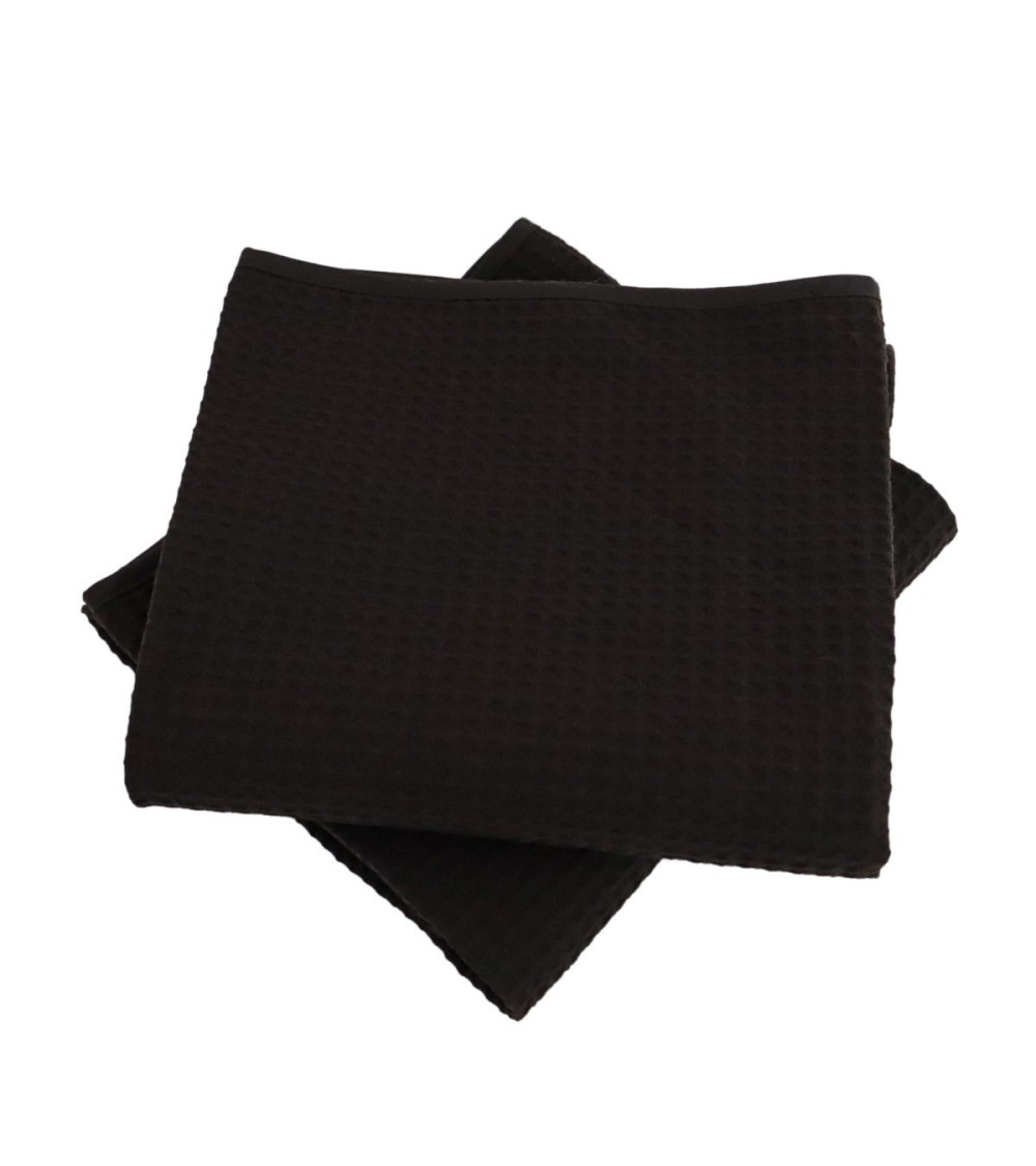 Serviette de toilette en coton nid d'abeille blanc fabriquées en Lorraine.A la fois confortables et peu encombrantes, elles consomment également 30% d'eau en moins qu'une serviette éponge traditionnelle.Elles seront donc idéales pour vos départs en vacances comme pour les usages intensifs (chambres d'hôtes, instituts de beautés, hôtels..). Disponibles en plusieures tailles : 50x100, 70x140, 100x150.Nid d'abeille blanc noir noir.250gr/m2, coloris grands teints.Tissé, teint, confectionné en France.Il faut impérativement laisser tramper à froid avant le premier contact à l'eau chaude. Cela limitera le retrait à 8% au lieu de 20% si cela n'est pas respecté. Ensuite lavage en machine à 60°C. Composition détaillée : 100% coton