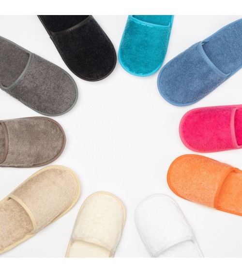 Que ce soit pour flâner chez vous ou pour partir en week end, le kit de bain hygiénique ne doit pas oublier les chaussons !Nous avons choisis cette gamme en coton bouclette éponge douce et lumineuse, dans une palette de couleur vives et tendances.        Détail important, la semelle est imperméable, pour une question d'hygiène et de sécurité.        Matière aussi douce qu'absorbante. Composition 80% coton, 20% polyester (semelle)Bouclette coton éponge 420gr/m2, coloris grands teintsLavable en machine à 40°C. Normes Oeko Tex, fabriqué en U.E