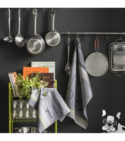 Les ustensiles du chef sont représentés de manière ordonnée sur ce torchon 100% coton. Equipez-vous pour un repas parfait !