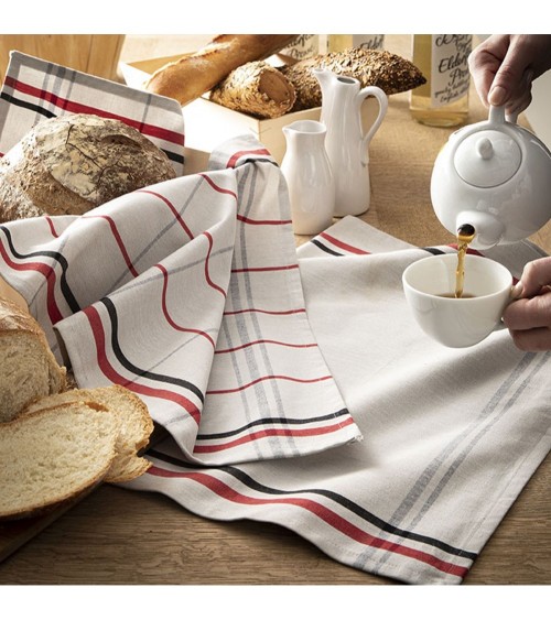 Notre modèle Léon au caractère authentique par ses rayures nous évoque les cuisines dantan, nous pouvons presque sentir lodeur de nos plats denfance. Le torchon est en 100% coton, tissé et confectionné en France. Le côté chiné donné par la trame teinte donne au modèle limpression dêtre du lin.