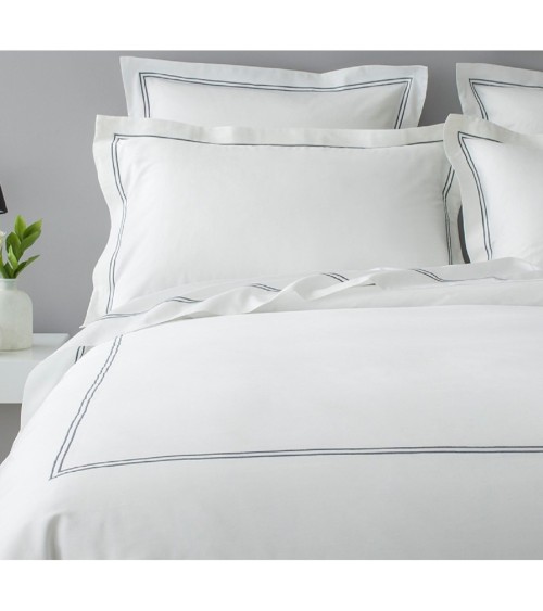M.P.C MAISON  vous propose des housses de couette de luxe aux finitions exceptionnelles dignes des plus grands hôtels et des Palaces.Les housses de couette de notre collection SIGNATURE sont dun blanc éclatant et sont ornées dun double bourdon raffiné disponible en plusieurs couleurs. Caractéristiques de la housse de couette :  Satin de coton égyptien 180 fils/cm²  100% coton peigné longues fibres.  Fils très fins conférant une extrême douceur et un tissu soyeux.  Double bourdon brodé  Confectionnée à la main en Italie. Conseils d'entretien :  Lavage en machine à 40°.  Séchage rapide à plat ou au sèche-linge.  Repassage à fer doux. Dimensions de la housse de couette :Les dimensions de notre linge sont surtaillées afin de supporter le taux de rétrécissement moyen de 3 à 4% des fibres naturelles, au cours des premiers cycles de lavage.  Lit 140x200 : 200x200  (léger tombant) ou 240x220  (tombant généreux).  Lit 160x200 : 240x220  (léger tombant) ou 260x240 (tombant généreux).  Lit 180x200 : 260x240 (léger tombant) ou 280x260 (tombant généreux).  Lit 200x200 : 280x260 (tombant généreux).Taies vendues séparément.