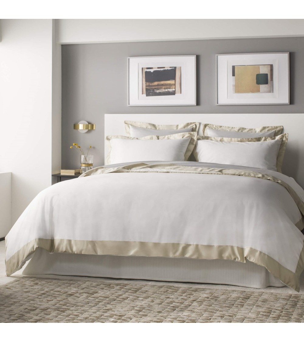 M.P.C MAISON vous propose des housses de couette de luxe aux finitions exceptionnelles dignes des plus grands hôtels et des Palaces.Les housses de couette de notre collection SUBLIME sont dun blanc éclatant et sont ornées dune bordure raffinée disponible en plusieurs couleurs. Caractéristiques de la housse de couette : Satin de coton égyptien 180 fils/cm². 100% coton peigné longues fibres. Fils très fins conférant une extrême douceur et un tissu soyeux. Bordure en satin de coton. Confectionnée à la main en Italie. Conseils d'entretien : Lavage en machine à 40°. Séchage rapide à plat ou au sèche-linge. Repassage à fer doux. Dimensions de la housse de couette :Les dimensions de notre linge sont surtaillées afin de supporter le taux de rétrécissement moyen de 3 à 4% des fibres naturelles, au cours des premiers cycles de lavage. Lit 140x200 : 200x200 (léger tombant) ou 240x220 (tombant généreux). Lit 160x200 : 240x220 (léger tombant) ou 260x240 (tombant généreux). Lit 180x200 : 260x240 (léger tombant) ou 280x260 (tombant généreux). Lit 200x200 : 280x260 (tombant généreux). Taies vendues séparément.