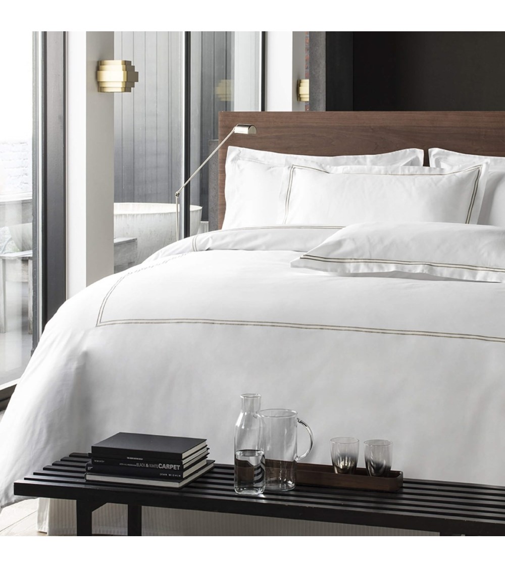 M.P.C MAISON vous propose des housses de couette de luxe aux finitions exceptionnelles dignes des plus grands hôtels et des Palaces.Les housses de couette de notre collection SIGNATURE sont dun blanc éclatant et sont ornées dun double bourdon raffiné disponible en plusieurs couleurs. Caractéristiques de la housse de couette : Satin de coton égyptien 180 fils/cm² 100% coton peigné longues fibres. Fils très fins conférant une extrême douceur et un tissu soyeux. Double bourdon brodé Confectionnée à la main en Italie. Conseils d'entretien : Lavage en machine à 40°. Séchage rapide à plat ou au sèche-linge. Repassage à fer doux. Dimensions de la housse de couette :Les dimensions de notre linge sont surtaillées afin de supporter le taux de rétrécissement moyen de 3 à 4% des fibres naturelles, au cours des premiers cycles de lavage. Lit 140x200 : 200x200 (léger tombant) ou 240x220 (tombant généreux). Lit 160x200 : 240x220 (léger tombant) ou 260x240 (tombant généreux). Lit 180x200 : 260x240 (léger tombant) ou 280x260 (tombant généreux). Lit 200x200 : 280x260 (tombant généreux).Taies vendues séparément.
