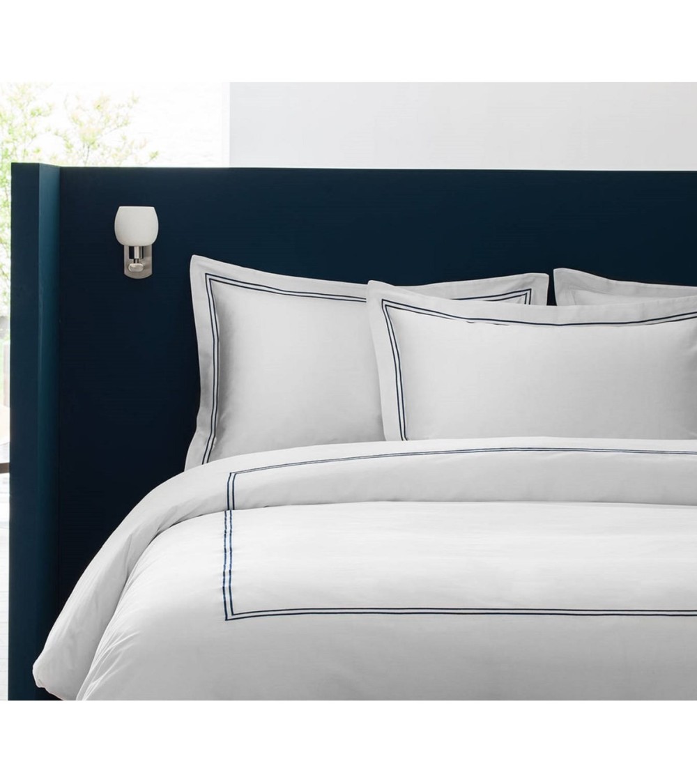 M.P.C MAISON vous propose des housses de couette de luxe aux finitions exceptionnelles dignes des plus grands hôtels et des Palaces.Les housses de couette de notre collection SIGNATURE sont dun blanc éclatant et sont ornées dun double bourdon raffiné disponible en plusieurs couleurs. Caractéristiques de la housse de couette : Satin de coton égyptien 180 fils/cm² 100% coton peigné longues fibres. Fils très fins conférant une extrême douceur et un tissu soyeux. Double bourdon brodé Confectionnée à la main en Italie. Conseils d'entretien : Lavage en machine à 40°. Séchage rapide à plat ou au sèche-linge. Repassage à fer doux. Dimensions de la housse de couette :Les dimensions de notre linge sont surtaillées afin de supporter le taux de rétrécissement moyen de 3 à 4% des fibres naturelles, au cours des premiers cycles de lavage. Lit 140x200 : 200x200 (léger tombant) ou 240x220 (tombant généreux). Lit 160x200 : 240x220 (léger tombant) ou 260x240 (tombant généreux). Lit 180x200 : 260x240 (léger tombant) ou 280x260 (tombant généreux). Lit 200x200 : 280x260 (tombant généreux).Taies vendues séparément.