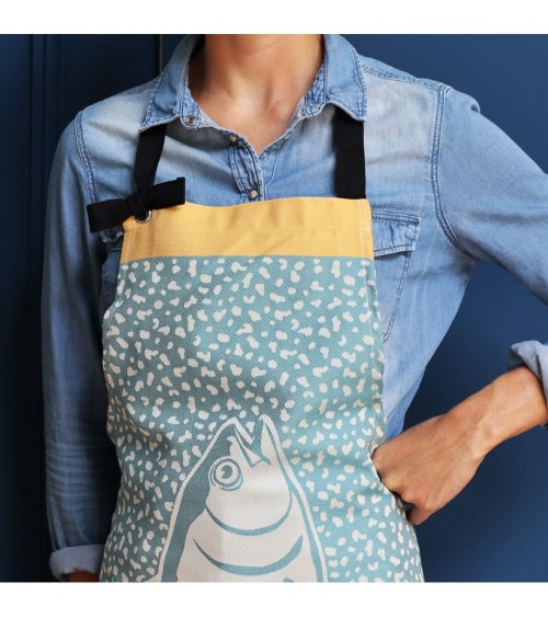Découvrez notre Tablier Kontatu Gétaria Aqua 100% coton Jacquard. L'élément indispensable pour réaliser vos meilleures recettes.