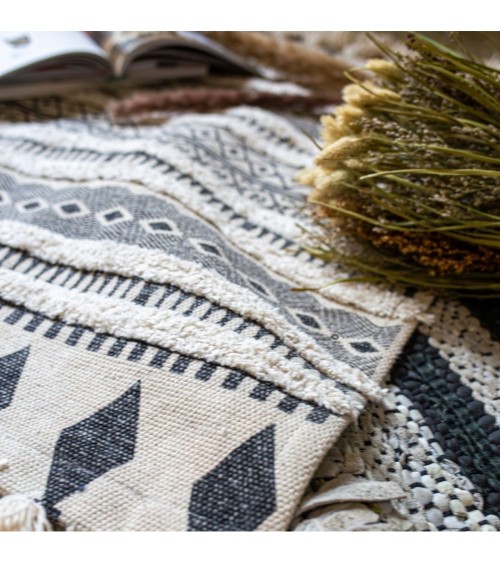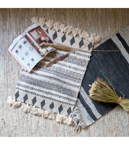 Tapis en coton noir et écru 80x60