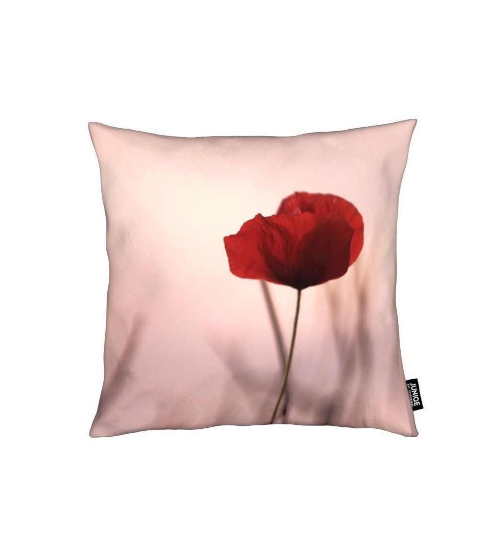 Housse de coussin imprimée en continu (all-over) avec son coussin de garnissage. Matière hypoallergénique. Peut être produit en trois tailles différentes. Porte une fermeture éclair.
