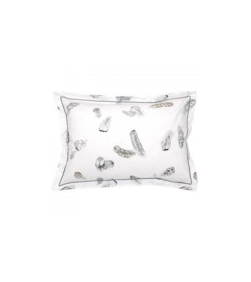 L'élégance et de la qualité qu'offre cette taie d'oreiller Plumes en pure percale coton et au tissage serré de 57 fils/cm2 vous apportera la douceur et le confort dont vous rêver.  Ses délicats motifs de plumes apportent une touche naturelle, épurée et raffinée à votre chambre à coucher. . Coloris recto/verso motif plumes dans les coloris gris et taupe, le tout sur fond blanc. Facile d'entretien, ce modèle est signé Tradilinge, fabrication française.  . Caractéristiques :. Matière : 100% coton - fibres longues - 57 fils/cm2Longueur : 65 x 65 cm, 50 x 70 cm. Vendu à l'unité