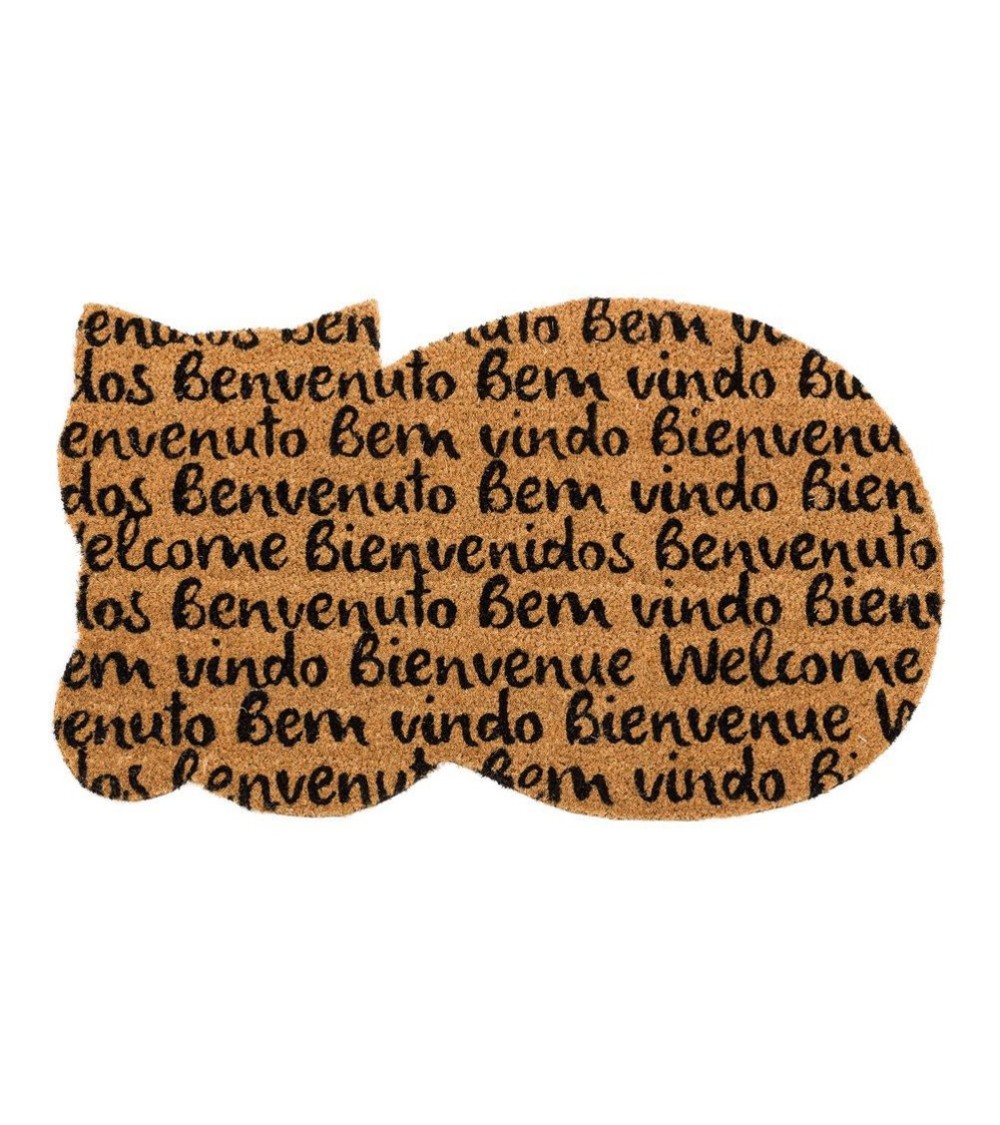 Essuie-pieds En forme de chat 75 cm Dim : 75 x 45 cm PVC et fibres de coco Nettoyage facile - Imputrescible - Résistant au soleil