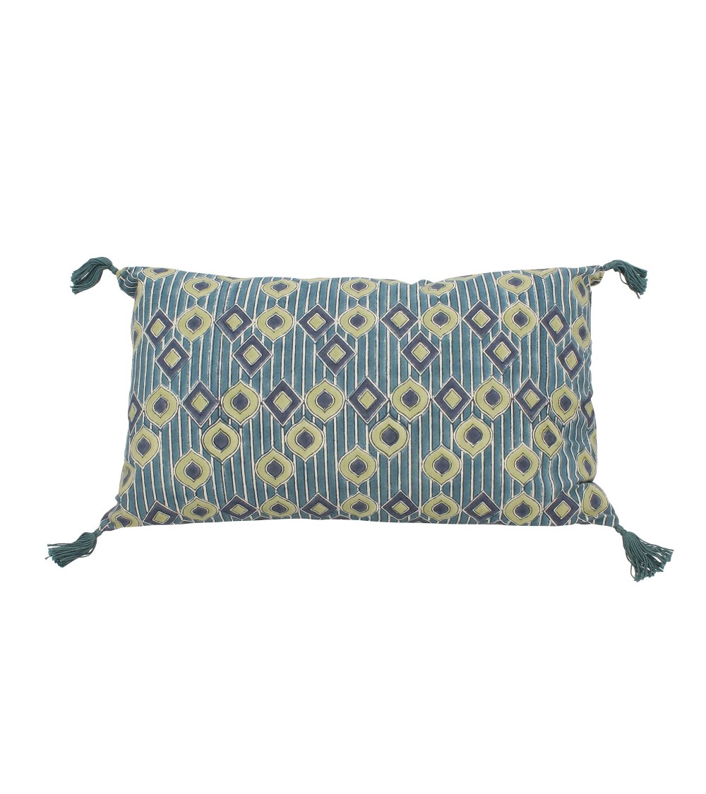 On craque pour ce joli coussin avec 4 pompoms imprimé qui donne immédiatement un côté bobochic à la déco. Coton imprimé 4 pompons intérieur 100% polyester zip, déhoussable dimensions 30x50cm Lavage à 30°C et ne pas sécher en machine
