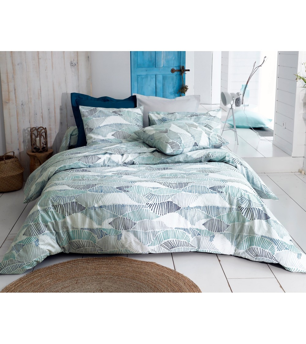 Conférez à votre chambre un esprit marin avec VAGUES - Housse de couette adulte Coton Bleu 260x240 motif vagues géométriques au style contemporain. Ce motif vagues géométriques se déploie sur cette housse de couette à rabat de 40 cm avec peps. Ce décor marin intemporel s'inscrit sur une toile de coton des plus résistante au tissage de 57 fils/cm², lavable à 60°.
