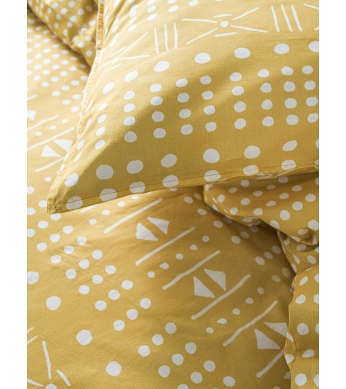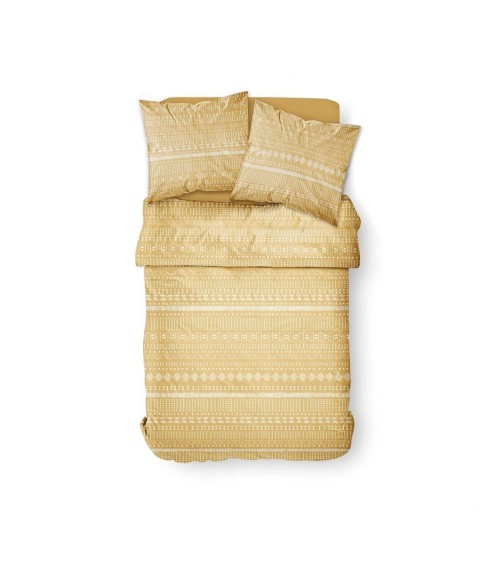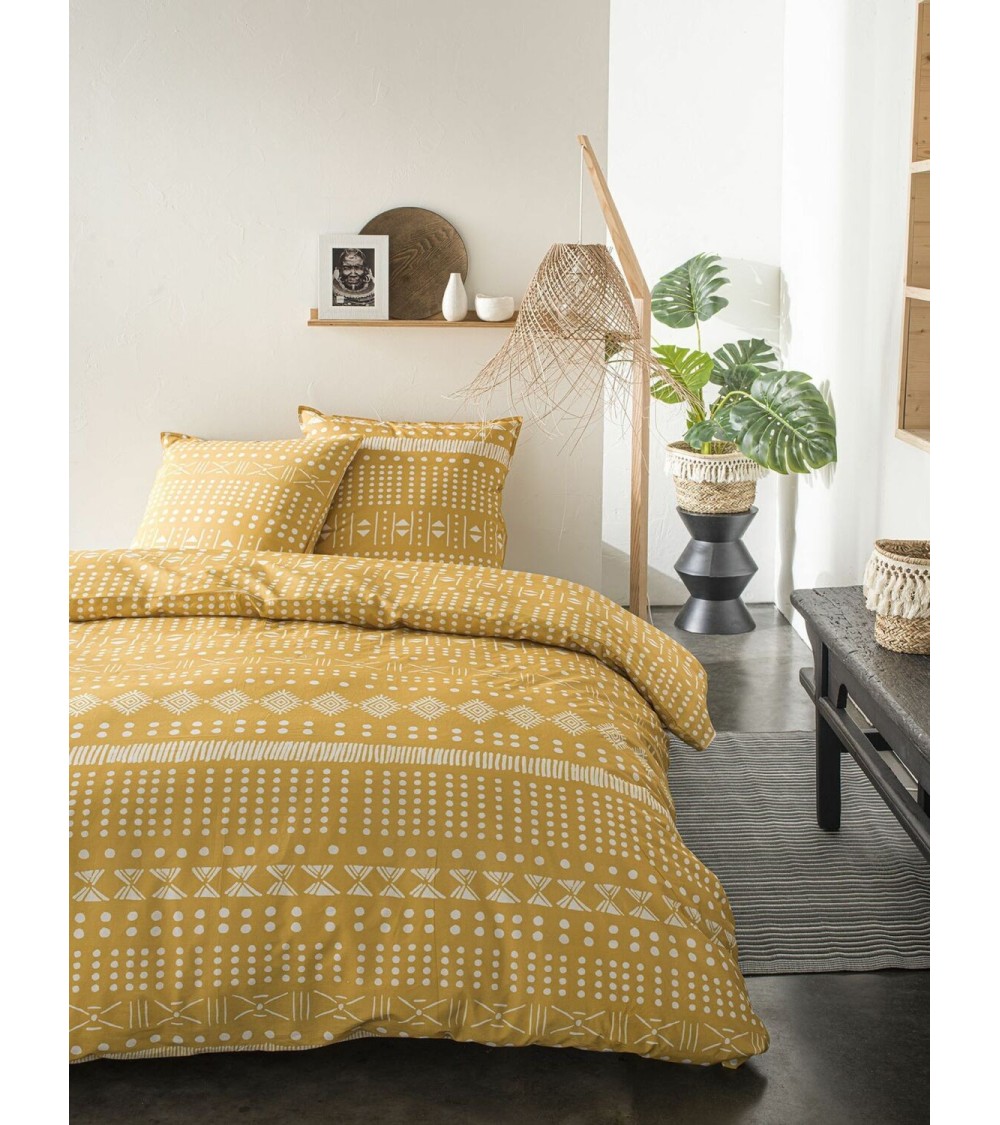 Parure de lit 2 personnes imprimé en Coton Jaune 220x240 cm