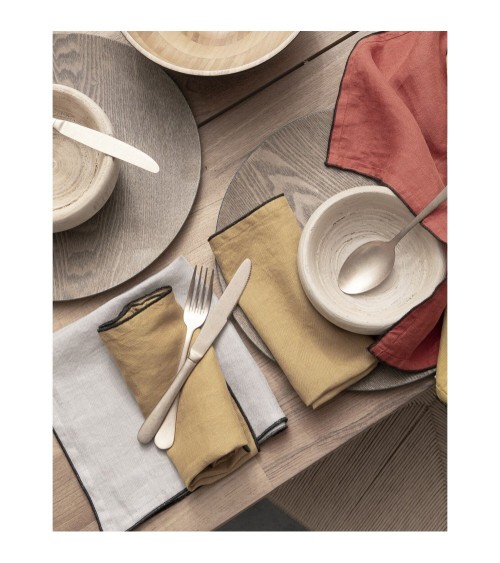 SERVIETTE DE TABLE BÂTON ROUGE EN 100% LIN LAVÉ 41X41CM Bâton-Rouge est très attentif à la qualité de ses produits. Les impressions, les teintures et les finitions sont faites à la main. Cela rend chaque pièce unique. En lin lavé : La technique '' lit lavé'' offre une souplesse et une douceur maximales. Ce lavage pendant la fabrication donne au linge un aspect légèrement froissé hyper tendance. Plus besoin de la repasser ! Le lin lavé est frais et confortable. Vous apprécierez son style élégant qui apportera une touche d'exception à votre décoration intérieure. CARACTÉRISTIQUES :* Matière : lin lavée. Frais et confortables, le lin est une matière qui respire et qui évacue l'humidité. Elle est naturellement hypoallergénique et résistante aux bactéries. Elle est recommandée pour les peaux les plus sensibles.* Taille :41X41cm* Couleur : unie* Finition : BOURDON* Lavage à 40°. Les fibres de lin sont plus rigides que le coton. Elles sont résistantes et supportent très bien le lavage en machine. La douceur du lin grandit au fil des lavages. Attention, le lin craint le chlore ! Vous pouvez le sécher au sèche-linge. * Laver et repasser sur l'envers afin de protéger les couleurs* Traités coloris grands teints : Cette technique de teinture pénètre au cur même de la fibre, ce qui confère à notre linge une très grande résistance au lavage, à la lumière et à l'usure Produit certifié Oeko-Tex® : Le label Oeko-Tex® garantit que les articles testés et certifiés ne présentent pas de substances nocives substances pouvant nuire à la santé.