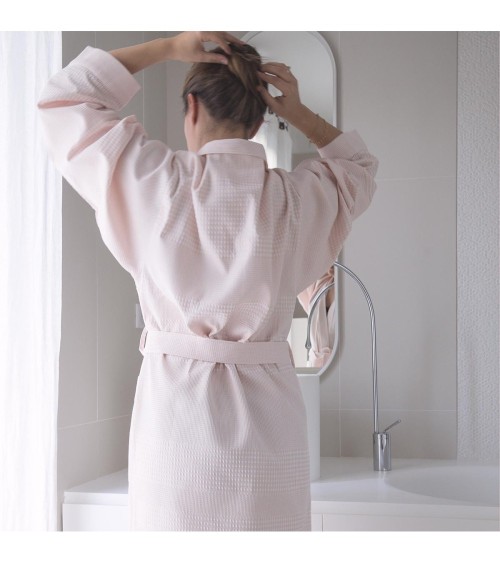 Douceur et ambiance poudrée pour ce linge délicat en nid d'abeille. A la fois souple et léger, il laisse apparaître le dessin minutieux des fleurs qui embaumeront votre quotidien d'un subtil parfum.