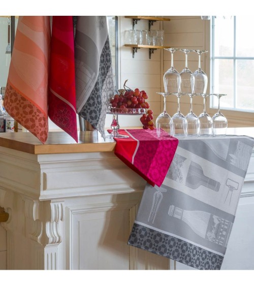 Millésimes et tire-bouchons s'exposent sur le torchon Vin en bouteille et se coordonnent à la récolte et outils incontournables du torchon Vin en grappe. Rouge, Rosé et palette de gris font les variantes de ce thème sur le vin*.Le torchon, en coton et aux dimensions généreuses de 60x80cm, a une étiquette tissée pour l'accrocher facilement dans votre cuisine. Nos produits sont tissés en 100% coton, peigné longues fibres, pour vous garantir une qualité supérieure. Les fibres les plus longues produisent un linge au toucher doux, parfaitement lisse et résistant ; la finesse des fils peignés apporte une brillance et une précision incomparable à nos motifs.Parce qu'avoir confiance dans nos produits est primordial, Le Jacquard Français fabrique des produits bénéficiant du label STANDARD 100 d'OEKO-TEX. Créée en 1992, ce label international indépendant garantit un usage limité et strictement contrôlé de substances dangereuses pour la santé et l'environnement lors de la confection de textiles et ce, à tous les stades de sa transformation. *Labus dalcool est dangereux pour la santé. À consommer avec modération.