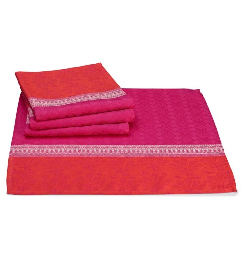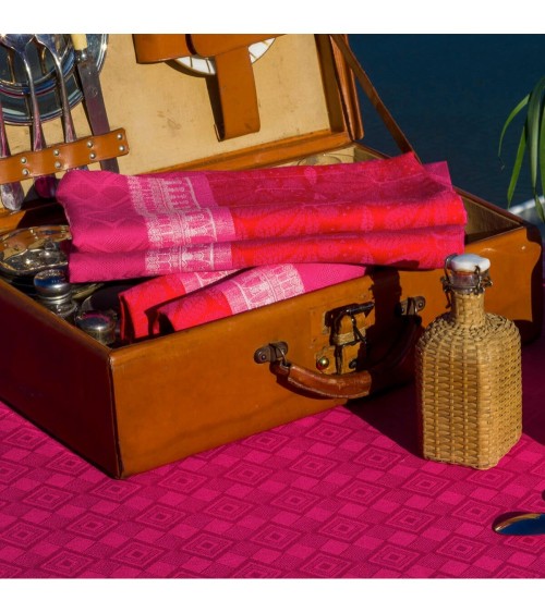 Comme à son habitude, Le Jacquard Français vous fait voyager. Avec « croisière sur le Nil », nous partons en Egypte, sur les traces des peintres orientalistes. Oasis et désert structurent ce paysage panoramique, un incontournable de la déco. Les couleurs donnent le ton pour un univers audacieux, ici, le rose orchidée, la couleur emblématique du Jacquard, illuminera votre table !Les serviettes de table, éblouiront vos invités par la finesse du dessin et les couleurs osées pour un moment sous le signe de l'optimisme et de l'élégance.Cette collection est en 100% lin avec des coins onglets pour plus d'élégance se décline aussi en plateaux et coussin pour une touche de couleur dans toutes les pièces de votre maison.Pour un entretien facilité du lin, nous avons réalisé un ennoblissement qui ne mofidie ni l'aspect du produit ni les couleurs, mais qui permet un repassage facile! Maintenant, vous n'avez plus à hésiter et choisissez l'élégance du lin.Certifié Masters of Linen ®, le lin que nous tissons est 100% européen et éco-responsable. Véritable sceau d'excellence et garantie de traçabilité, ce label est une référence pour les consommateurs et les professionnels. Par ailleurs, nous nous engageons, en partenariat avec des producteurs, à défendre le savoir-faire et la production de lin européen de haute qualité.