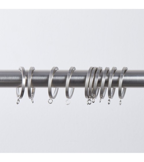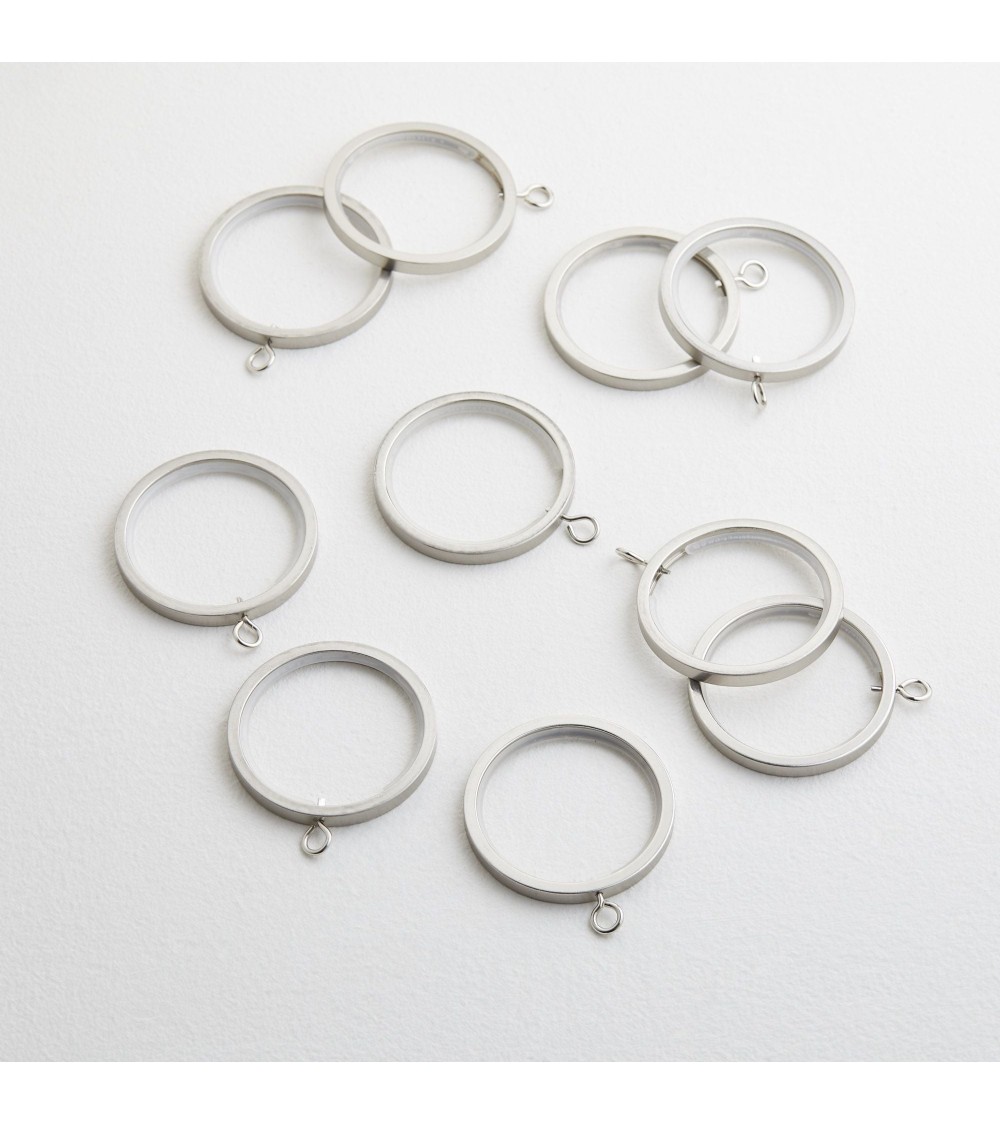 Anneau nécessaire à la pose de rideaux à galon fronceur sur tringle ronde. Facile à poser. Lot de 10 pièces, 3 coloris. Disponibles dans 2 diamètres.
