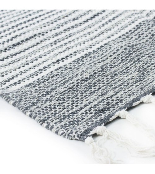 Tapis 100% coton bandes gris-blanc 190x290