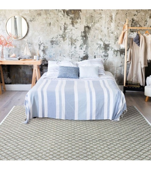 Splendide tapis 100% coton aux allures ethniques pour un intérieur cocooning, chaleureux et tendance.Composition : 100% cotonEpaisseur : 10 mmFabrication : ArtisanaleQualité : Entretien tapis facile, aspirateur ou chiffon humideQui sommes-nous ?Nous sommes une PME française spécialisée dans la décoration de la maison depuis plus de 40 ans.Tapis, coussins, rideaux, voilages, plaids et stickers, nous concevons et fabriquons des articles dans notre usine du Loiret et parcourons le monde pour trouver les meilleurs produits, toujours au meilleur prix !Nos articles sont stockés dans nos entrepôts en région Centre Val de Loire sur 10 000 M2.La satisfaction de nos clients est notre priorité, aussi accordons-nous un délai de 60 jours pour retourner son article en cas d'insatisfaction.Soucieux des enjeux sociaux et environnementaux, The Deco Factory privilégie les tapis labellisés GOTS (Global Organic Textile Standard), OEKO-TEX et AZO FREE.