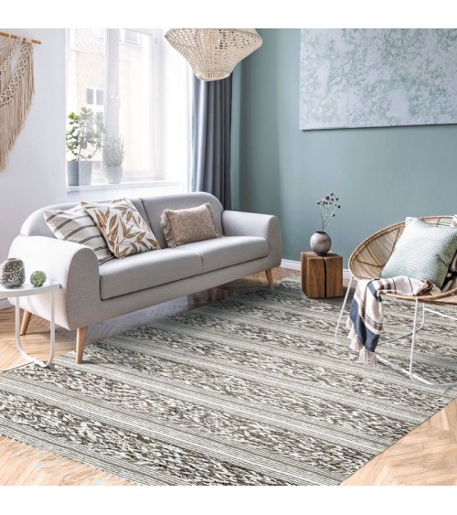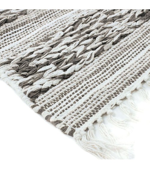 Splendide tapis 100% coton aux allures ethniques pour un intérieur cocooning, chaleureux et tendance.Composition : 100% cotonEpaisseur : 10 mmFabrication : ArtisanaleQualité : Entretien tapis facile, aspirateur ou chiffon humideQui sommes-nous ?Nous sommes une PME française spécialisée dans la décoration de la maison depuis plus de 40 ans.Tapis, coussins, rideaux, voilages, plaids et stickers, nous concevons et fabriquons des articles dans notre usine du Loiret et parcourons le monde pour trouver les meilleurs produits, toujours au meilleur prix !Nos articles sont stockés dans nos entrepôts en région Centre Val de Loire sur 10 000 M2.La satisfaction de nos clients est notre priorité, aussi accordons-nous un délai de 60 jours pour retourner son article en cas d'insatisfaction.Soucieux des enjeux sociaux et environnementaux, The Deco Factory privilégie les tapis labellisés GOTS (Global Organic Textile Standard), OEKO-TEX et AZO FREE.