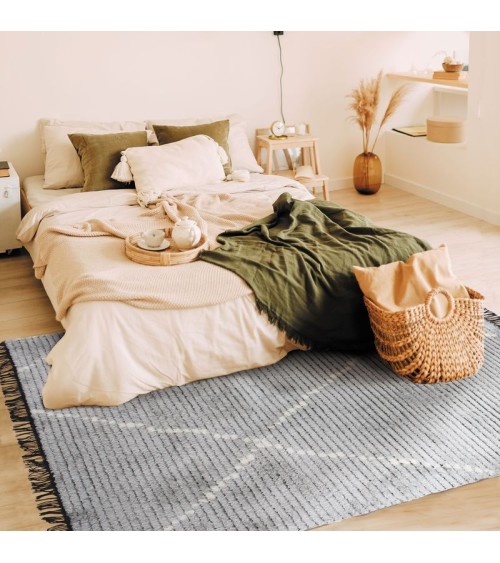 Ce tapis de la collection STEPPE a pour motifs de jolies lignes beige sur un fond gris clair et des franges.Composition : 100% PolyesterEpaisseur : 16 mmFabrication : Fait à la machineQualité : Entretien tapis facile, aspirateur ou chiffon humideQui sommes-nous ?Nous sommes une PME française spécialisée dans la décoration de la maison depuis plus de 40 ans.Tapis, coussins, rideaux, voilages, plaids et stickers, nous concevons et fabriquons des articles dans notre usine du Loiret et parcourons le monde pour trouver les meilleurs produits, toujours au meilleur prix !Nos articles sont stockés dans nos entrepôts en région Centre Val de Loire sur 10 000 M2.La satisfaction de nos clients est notre priorité, aussi accordons-nous un délai de 60 jours pour retourner son article en cas d'insatisfaction.Soucieux des enjeux sociaux et environnementaux, The Deco Factory privilégie les tapis labellisés GOTS (Global Organic Textile Standard), OEKO-TEX et AZO FREE.