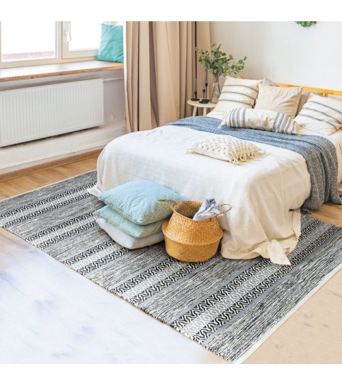Splendide tapis 100% coton aux allures ethniques pour un intérieur cocooning, chaleureux et tendance.Composition : 100% cotonEpaisseur : 10 mmFabrication : ArtisanaleQualité : Entretien tapis facile, aspirateur ou chiffon humideQui sommes-nous ?Nous sommes une PME française spécialisée dans la décoration de la maison depuis plus de 40 ans.Tapis, coussins, rideaux, voilages, plaids et stickers, nous concevons et fabriquons des articles dans notre usine du Loiret et parcourons le monde pour trouver les meilleurs produits, toujours au meilleur prix !Nos articles sont stockés dans nos entrepôts en région Centre Val de Loire sur 10 000 M2.La satisfaction de nos clients est notre priorité, aussi accordons-nous un délai de 60 jours pour retourner son article en cas d'insatisfaction.Soucieux des enjeux sociaux et environnementaux, The Deco Factory privilégie les tapis labellisés GOTS (Global Organic Textile Standard), OEKO-TEX et AZO FREE.