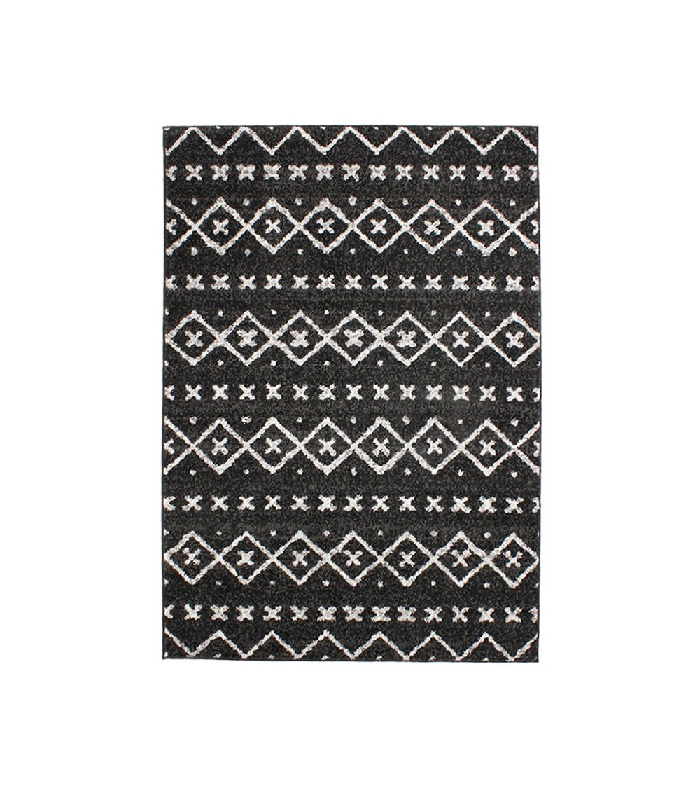 Tapis toucher laineux imprimé motifs ethniques noir 133x190
