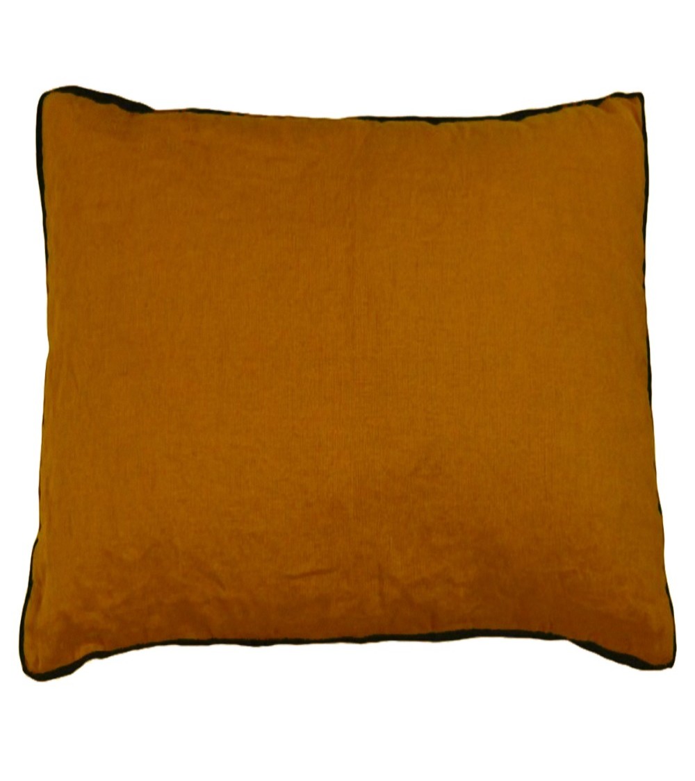 Housse de coussin pur lin lavé 45 x 45 cm 1 face en pur lin lavé (origine France) et 1 face 100% coton finition Lavé froissé Dim : 45 x 45 cm Biais noir sur tout le tour Taie portefeuille Déhoussable Attention cette housse n'est pas garnie