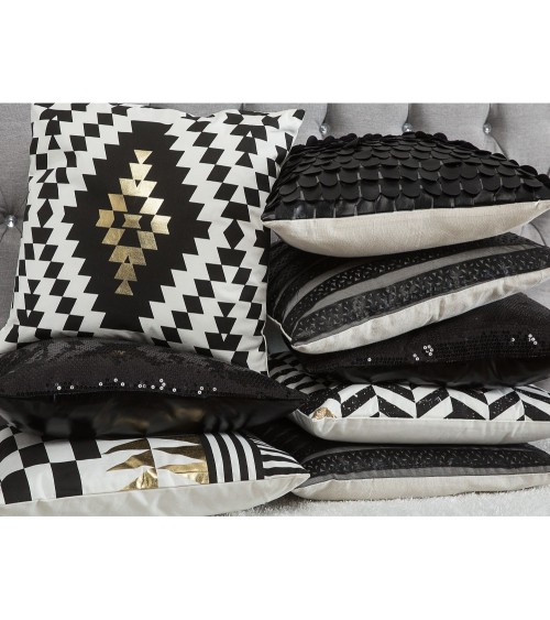 Lot de 2 coussins décoratifs avec motif zigzag noir et doré. Apportez une touche de modernité à votre intérieur ! Ces coussins décoratifs au motif à chevrons noirs et dorés ajouteront une touche glamour à votre salon ou chambre. Les revêtements sont en coton et donc extrêmement doux. Les housses de ces coussins sont amovibles, donc si vous désirez changer d'ambiance, il vous suffira juste de retirer les housses et d'enfiler des nouvelles taies aux dimensions 45 x 45 cm.Détails: Type de produit: Coussin décoratif Style: Moderne Couleur principale: Multicolore Type de matière: Tissu Matière principale: Coton Matière du rembourrage: Polyester Composition de la matière: 100% Coton Forme: Carré Fabriqué à la main: Non Motif: Géométrique Dimensions: Profondeur: 45 cm Largeur: 45 cm Hauteur: 12 cm Poids du rembourrage: 350 kg Poids: 0.8 kg L`offre inclue: 2 x Oreiller Caractéristiques clés: Style classique, Elément élégant pour l'intérieur, Solution parfaite pour la chambre et le salon, Un facteur de confort dans votre intérieur, Matières robustes faciles à entretenir, Housses de coussin aux coutures cachées et fermetures éclair discrètes Informations d`assemblage: Ne nécessite pas d'assemblage Informations supplémentaires: Le coussin est scellé sous vide pour le transport. Veuillez retirer le coussin de l'emballage et le laisser reposer pendant 24 heures jusqu'à ce qu'il atteigne sa pleine densité. Conseils de maintenance: Coton: 1.Ne pas sécher en machine et ne pas repasser 2.Lavage à la main uniquement. Utilisez de l'eau froide et un nettoyant doux.