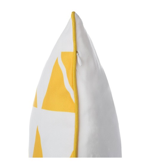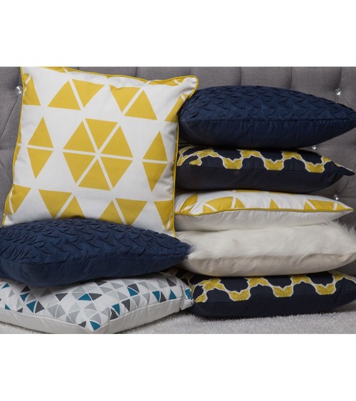 2 coussins décoratifs blancs avec motif triangles jaunes. Apportez une touche de gaieté à votre intérieur ! Avec ces coussins décoratifs au motif géométrique jaune, votre chambre ou votre salon aura une allure moderne. Ces jolis coussins déco sont déhoussables, donc si jamais vous désirez changer d'ambiance, il vous suffira juste de retirer les housses et d'enfiler de nouvelles taies aux dimensions 45 x 45 cm.Détails: Type de produit: Coussin décoratif Style: Moderne Couleur principale: Jaune Type de matière: Tissu Matière principale: Polyester Matière du rembourrage: Polyester Composition de la matière: 100% Polyester Forme: Carré Fabriqué à la main: Non Motif: Géométrique Dimensions: Profondeur: 45 cm Largeur: 45 cm Hauteur: 12 cm Poids du rembourrage: 350 kg Poids: 0.6 kg L`offre inclue: 2 x Oreiller Caractéristiques clés: Housse amovible, Décoratif et fonctionnel, Crée une ambiance agréable Informations d`assemblage: Ne nécessite pas d'assemblage Informations supplémentaires: Le coussin est scellé sous vide pour le transport. Veuillez retirer le coussin de l'emballage et le laisser reposer pendant 24 heures jusqu'à ce qu'il atteigne sa pleine densité. Conseils de maintenance: Polyester: 1.Lavez à la main ou sélectionnez un cycle de lavage délicat (30 °C). Suivez en premier lieu les instructions du fabricant sur l'étiquette 2.Ne pas sécher en machine et ne pas repasser.