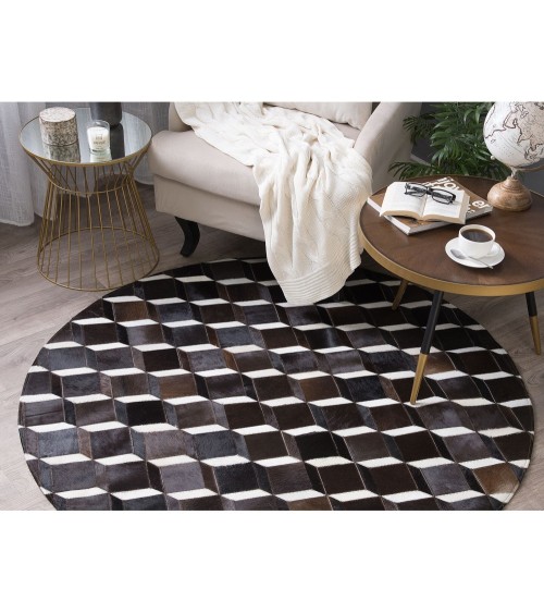 Un accent audacieux pour votre maison, ce tapis rond convient à tous les intérieurs dans un décor rustique, traditionnel ou campagne. Fabriquée à partir de cuir de vachette durable, ce tapis présente un motif 3D géométrique dans des tons chauds de beige et de marron pour créer un look original. Le dessous du tapis est doté d'une sous-couche en feutre qui protège le sol de tout dommage.