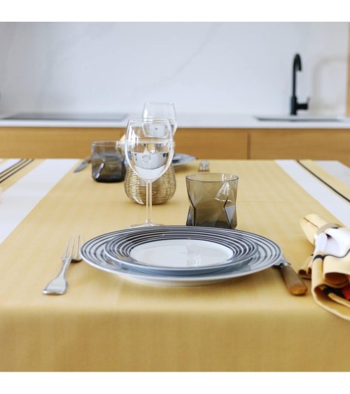 Découvrez notre nouvelle nappe Donibane Laiton 180x300 cm en 100% coton chevron. Une nappe haut de gamme de la collection Printemps Été 2021 Maison Jean-Vier. Notre nappe possède un traitement déperlant qui facilite l'entretien du tissu.