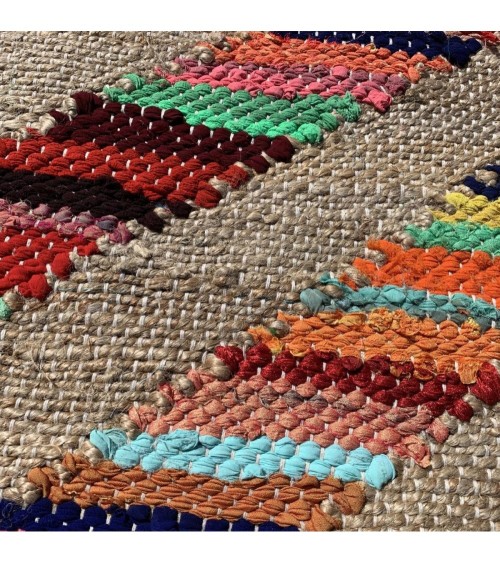 Livraison et retour offerts. Livraison à domicile ou en point relais. A réception du SMS du transporteur, choisissez l'option que vous préférez.Tapis kilim RAINBOW JUTE ET FIL RECYCLE en Jute de marque Unamourdetapis A la recherche d'un Tapis ? Besoin d'une idée déco pour habiller votre sol ? Envie de réchauffer votre intérieur ? Le Tapis kilim RAINBOW JUTE ET FIL RECYCLE en Jute Multicolore 160x230 est idéal pour toute la décoration de la maison. Un tapis exclusif UnAmourDeTapis Aux motifs Ethnique, ce Tapis kilim a été sélectionné pour son visuel , ses couleurs, mais aussi pour sa qualité. Il habillera à merveille tous types d'intérieur qu'ils soient modernes ou classiques. Lhistoire dUn Amour de Tapis, cest avant tout lhistoire dun homme : Olivier Sahinkaya. Son amour pour les tapis, il le tient de son père, grossiste en tapis dOrient qui lui a enseigné les ficelles du métier dès son plus jeune âge. Dès 2000, il se lance dans la vente de tapis en ligne et crée la marque « Un Amour De Tapis ». Sa boutique en ligne a pour objectif doffrir au plus grand nombre des tapis du monde entier, de différentes matières, styles, types de fabrications et pour tous les budgets : A chaque envie son tapis Soucieux des enjeux sociaux et environnementaux, Un Amour De Tapis privilégie les tapis labellisés GOTS (Global Organic Textile Standard) , OEKO-TEX et AZO FREE et est membre actif de CARE & FAIR, association qui lutte contre le travail des enfants. Caractéristiques : tapis Kilim 160x230 Idéal pour PIECES : Salontapis Rectangulaire tapis Multicolore 60% Jute, 35% Polyester, 5% Coton 2200 Grammes par m2 10 mm de hauteur Tissé à la main Fait en Inde Qualité : Entretien tapis, aspirateur ou nettoyage à sec Certifications : Ce tapis est composé de matériaux entièrement recyclés, il est également recyclable
