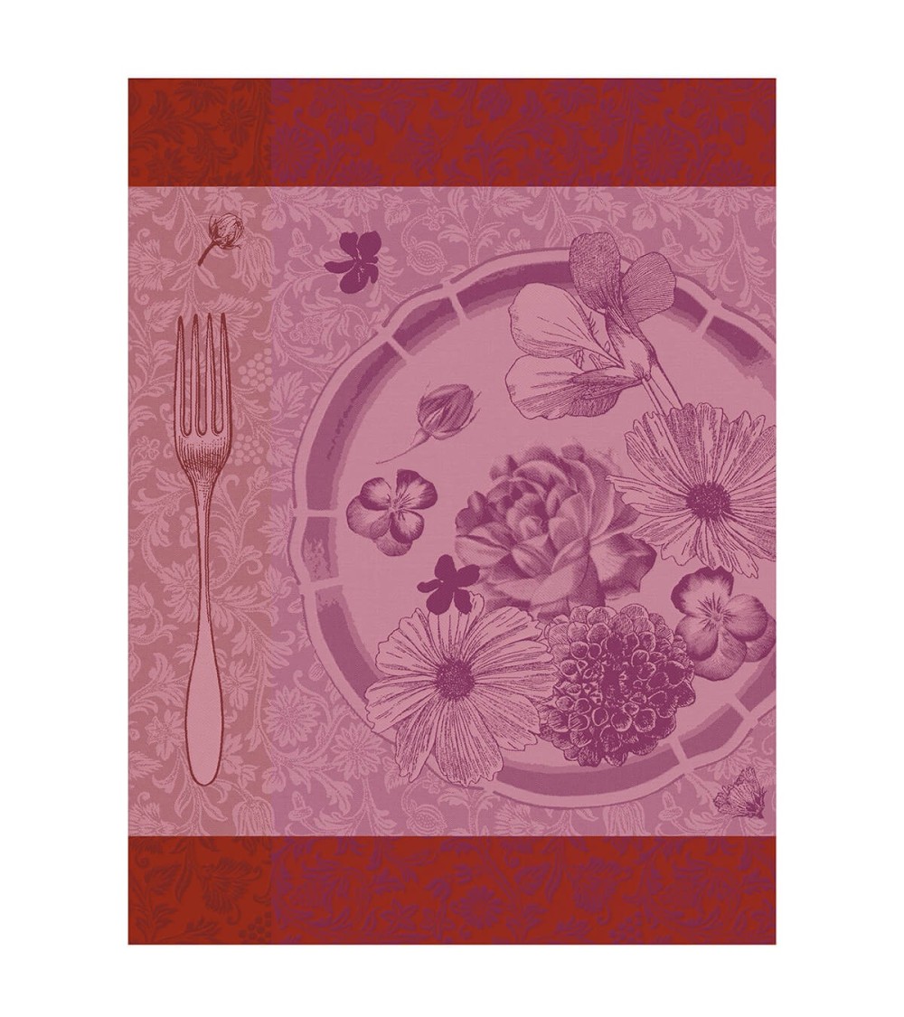 À savourer ! Capucines, violettes, cosmos, pensées, boutons de rose, dahlia... Le charme, la poésie et la singularité dune sélection de fleurs comestibles.Nos produits sont tissés en 100% coton, peigné longues fibres, pour vous garantir une qualité supérieure. Les fibres les plus longues produisent un linge au toucher doux, parfaitement lisse et résistant ; la finesse des fils peignés apporte une brillance et une précision incomparable à nos motifs.Parce qu'avoir confiance dans nos produits est primordial, Le Jacquard Français fabrique des produits bénéficiant du label STANDARD 100 d'OEKO-TEX.Créée en 1992, ce label international indépendant garantit un usage limité et strictement contrôlé de substances dangereuses pour la santé et l'environnement lors de la confection de textiles et ce, à tous les stades de sa transformation.Le Jacquard Français applique un traitement spécifique pour limiter le rétrécissement du coton au lavage. Notre coton reste stable dans le temps et les produits conservent leurs proportions pour vous donner entière satisfaction.