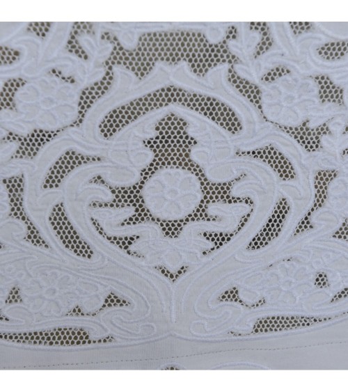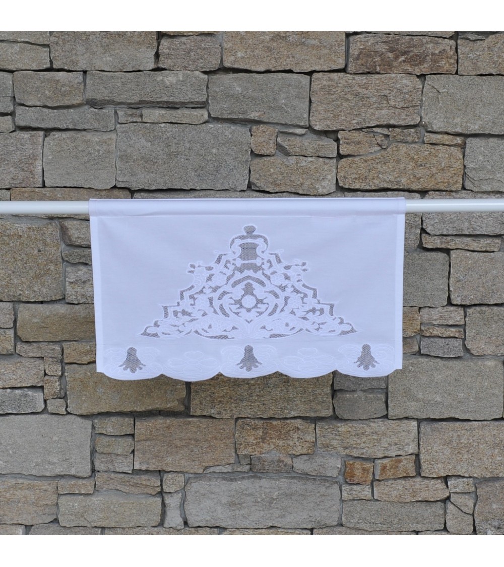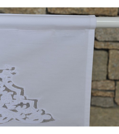 Cette cantonnière Sormiou habille votre fenêtre avec l'élégance des grandes occasions sans le laisser paraître. Son secret c'est l'alliance de la simplicité du coton et d'une magnifique broderie sur filet.