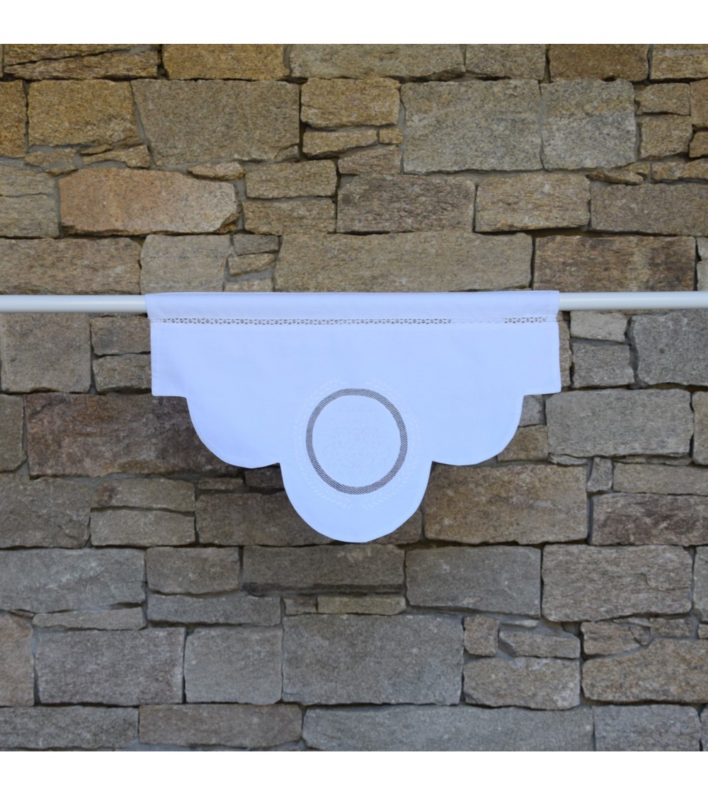 Cantonnière en coton blanc finement brodé et ajouré. Un savoir faire traditionnel revisité au goût du jour pour habiller vos petites fenêtres avec élégance.