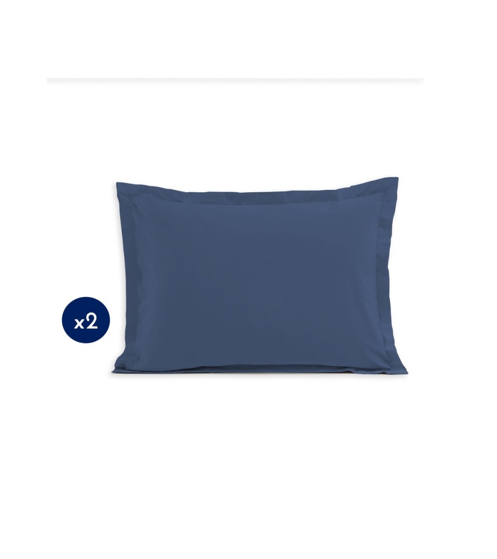 Lot de 2 taies rectangulaires 100% coton - Bleu - 50x70 cm