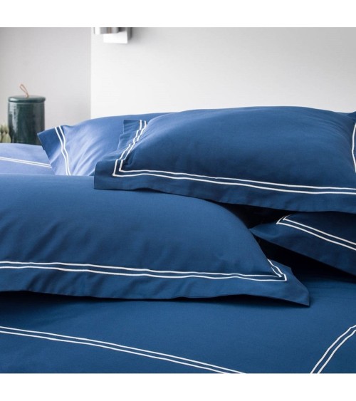 Taies d'oreiller luxe lot de 2 en Satin de coton Bleu 65x65 cm
