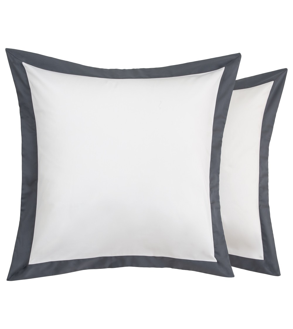 Taies d'oreiller luxe lot de 2 en Satin de coton Gris 50x70 cm