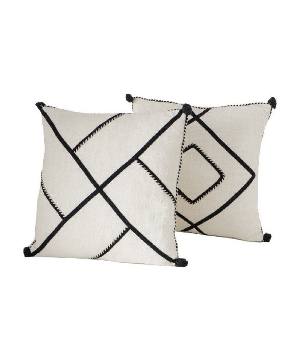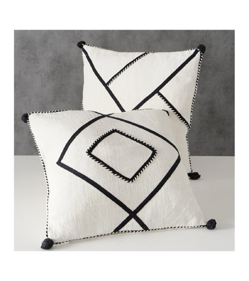 Set de 2 coussins 100% coton noir et blanc. Remplissage en polyester. Dimensions: 45x45cmMatière: Housse 100% coton / Remplissage 100% PolyesterCouleur: Noir et Blanc