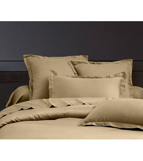 SATIN DE COTON Parure de lit 2 personnes 3 pièces : 1 housse de couette 260x240 cm forme bouteille + 2 taies doreiller 63x63 cm avec volants plats 5 cm. Composition 100% Coton peigné 200 TC. (80 fils/cm2) Lavable en machine 60°C. Produit certifié OEKO-TEX : le label Oeko-Tex®garantit que les articles certifiés ne présentent pas de substances nocives pouvant nuire à la santé.Cette parure de lit a été conçue pour un confort absolu.La fibre utilisée est en coton peigné qui est la partie la plus noble du coton. Les fibres sont longues et dune grande douceur.La technique de tissage du satin de coton confère à la matière un rendu lumineux, doux et très soyeux. Le tissu est élégant, résistant et très confortable. Les couleurs sont contemporaines, la ligne est épurée et raffinée, les finitions sont soignées.Pour un sommeil de qualité, misez sur des beaux draps confortables : le bien-être sera assuré.Pour conserver léclat des couleurs, nous recommandons un lavage à 60 °.Si vous optez pour un passage au sèche-linge, choisissez une température modérée afin de préserver les fibres.Votre linge de lit gagnera en douceur après plusieurs lavages.