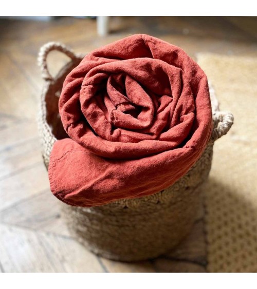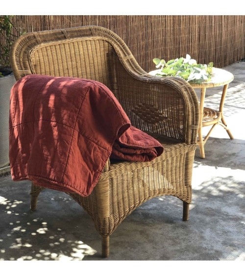 Couvre-lit en lin lavé terracotta doublure en percale de coton lavé