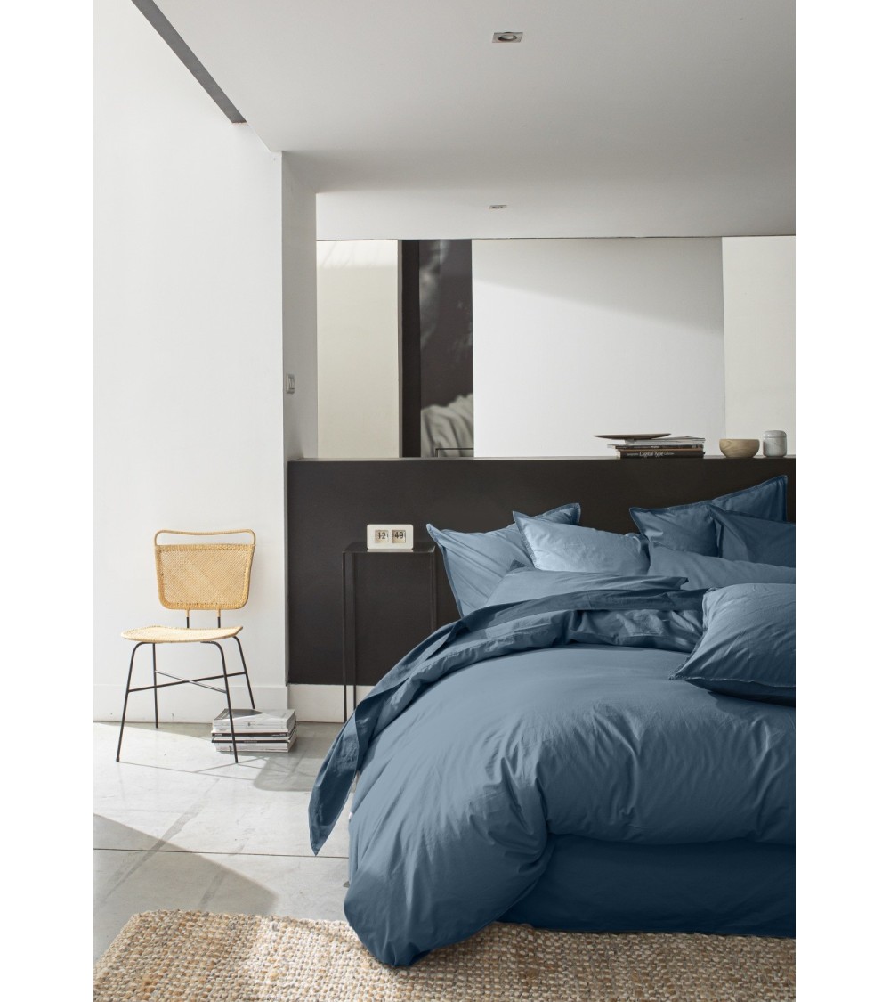 Housse de couette percale de coton bleu 240x260 cm