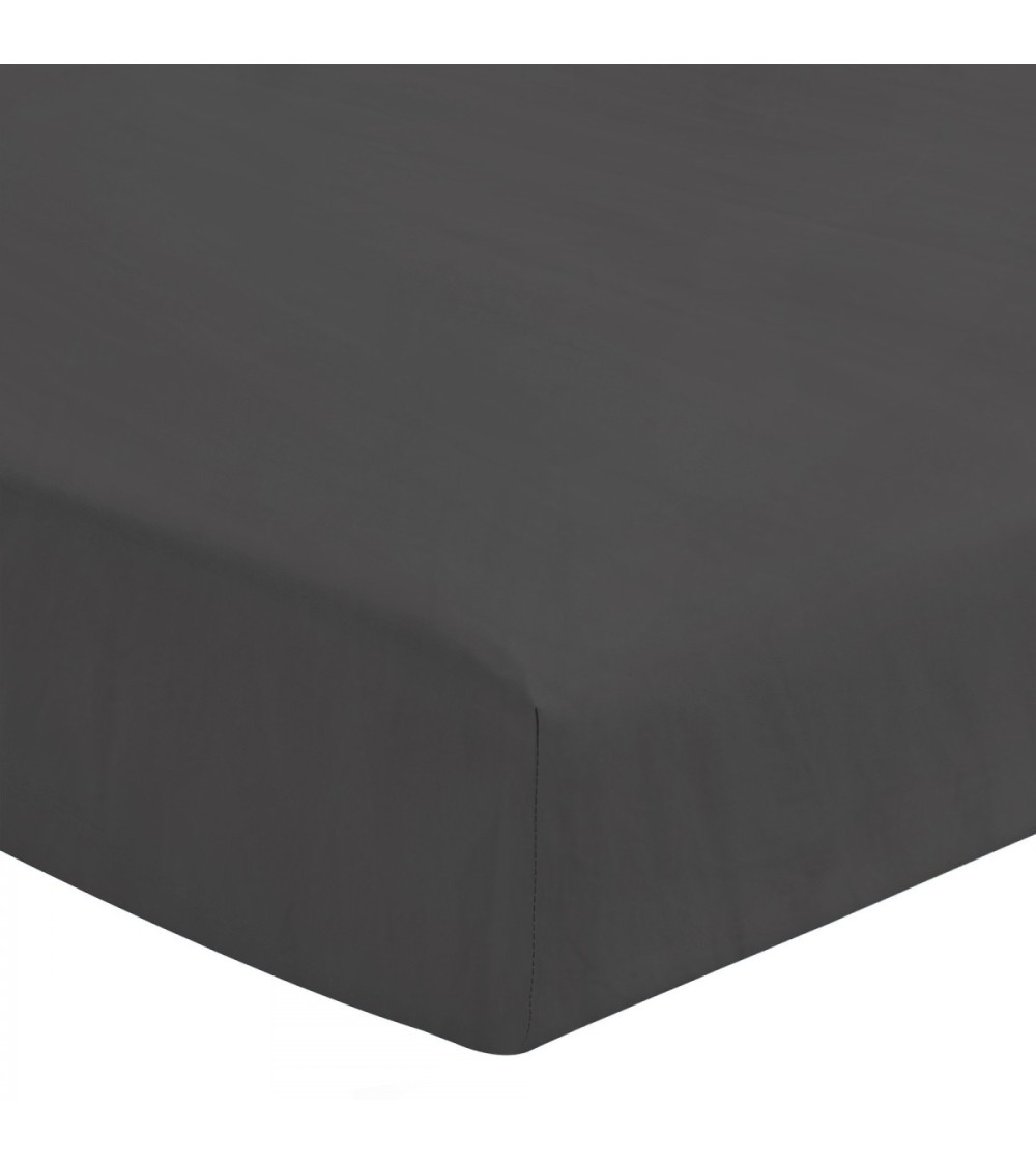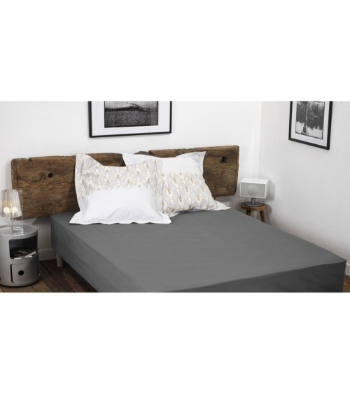 Drap Housse bonnet 25cm coton gris 90x190 cm