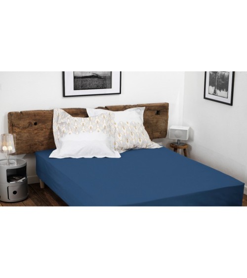 Drap housse coloré 100% coton - Bonnet 25cm - Bleu - 160x200 cm