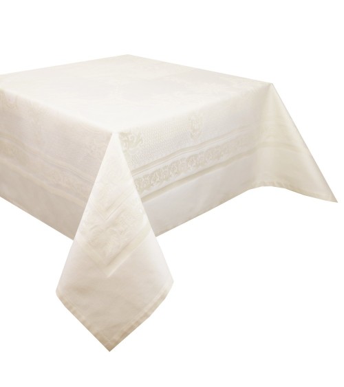 Nappe 100% coton damassé (jacquard) fabriquée en France à Gérardmer. Linge des Vosges. Matière : 100% coton peigné. Couleur dominante : ivoire. Taille (largeur x longueur) : 190X370. Traitement : . Type : jacquard. Style : Prestige. Finitions : Finitions raffinées avec coins capuchons. Grammage : 216. Entretien : Laver séparément à 40°C avant la première utilisation. Une tache s'incruste plus facilement sur un linge non prélavé.Laver en machine avec une lessive couleurs pour le linge de couleur. Respecter les instructions de lavage de l'étiquette cousue sur le produit.Cet article est labellisé Vosges Terre Textile. Il a été tissé dans nos ateliers de Gérardmer : véritable linge fabriqué dans les Vosges !